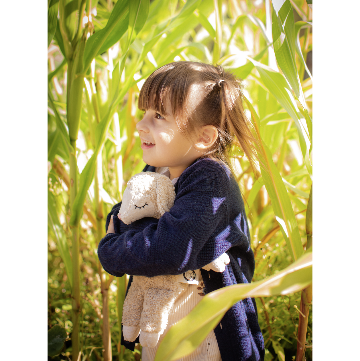A very special handmade ecological toy. It is a cuddly toy and a warm pillow at the same time. The organic cotton makes them soft and cuddly. Inside there is a removable cotton pillow. The big animals are filled with organic spelled chaff, the little ones are filled with grape seeds. Thus, the cuddly toy turns into a warming cushion.