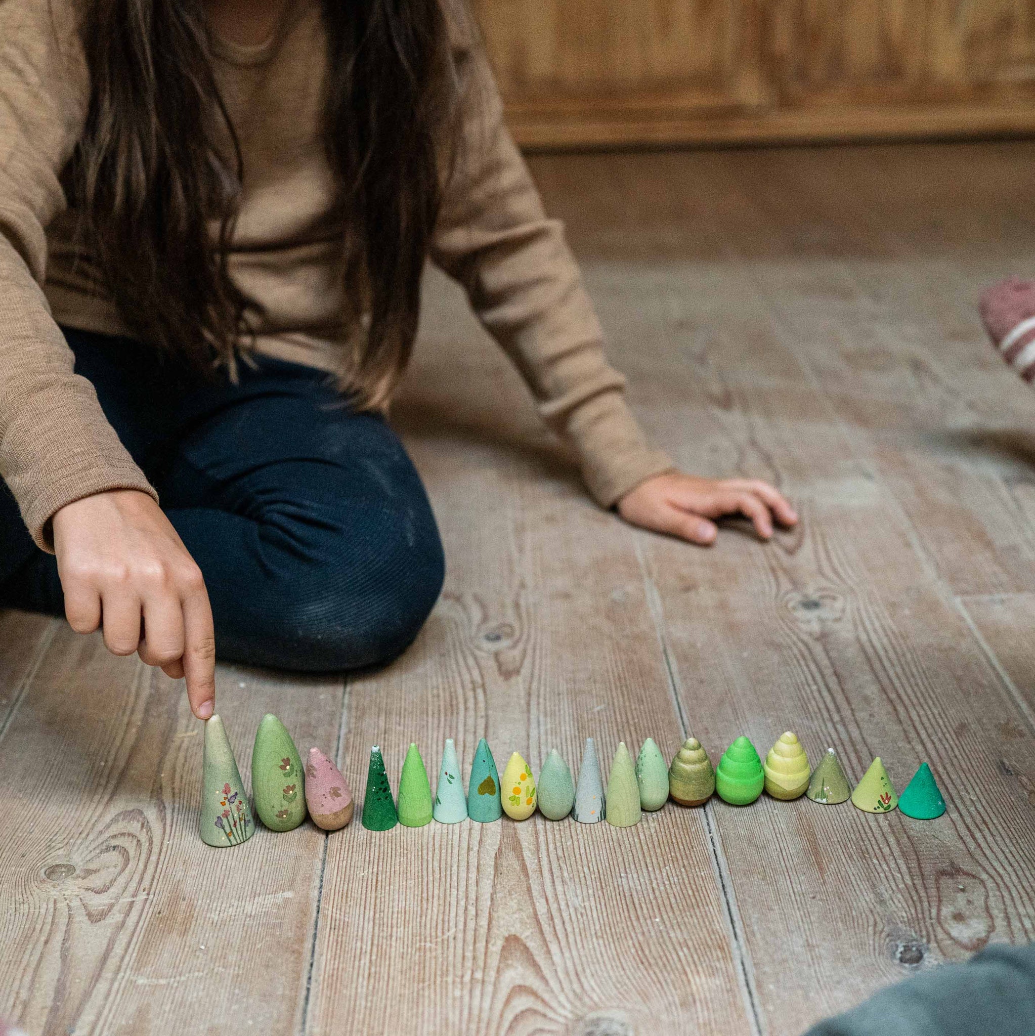 A forest in your hands—this set of hand-painted wooden trees is made for open-ended play, with gentle shapes and earthy tones that invite little ones to build, arrange, and explore freely. Whether they’re setting the scene for tiny animal friends, building a woodland path, or simply exploring and sorting, these tres bring nature into the playroom—encouraging quiet moments of curiosity, intention, and connection.