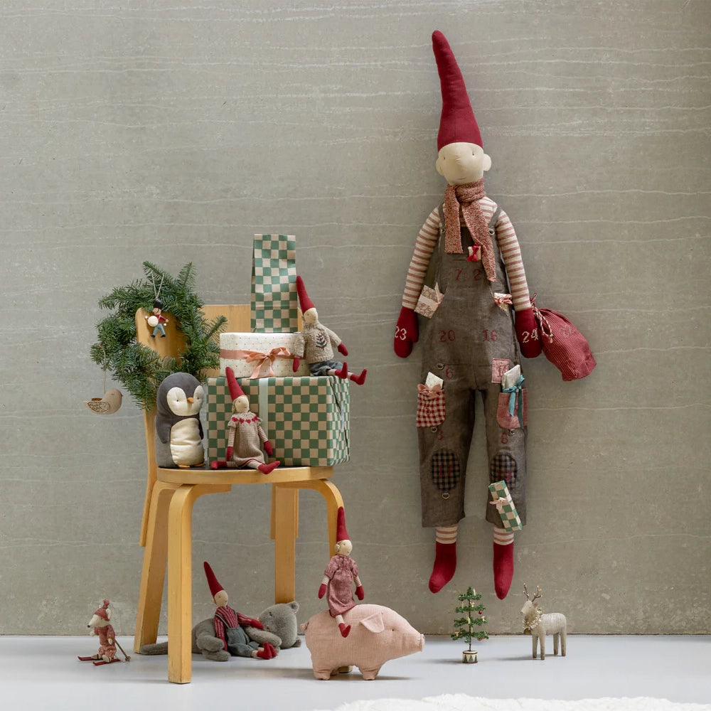 December is full of family traditions and this calendar pixy can be your next. The calendar boy has 24 rings/pockets to fasten small treats - one for each day before Christmas. The pixy has a strap in the neck, so it is easy to hang everywhere.